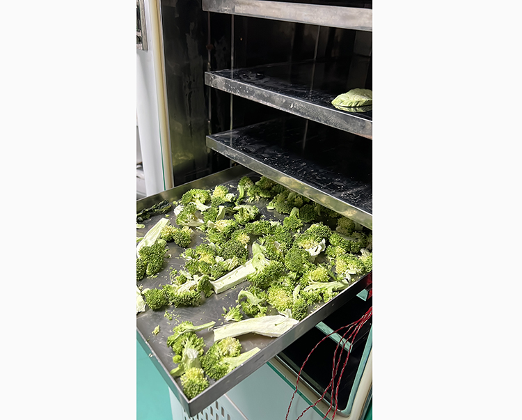 7、真空包裝:將冷凍干燥4個小時的西蘭花菜取出即可放置即可進行真空包裝。